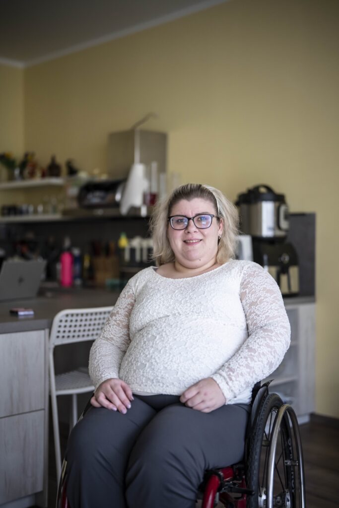 Asi nepřekvapí, že když tato akční vozíčkářka nemohla v Olomouci najít práci, rozhodla se odejít do Prahy. Nejprve pracovala na ministerstvu školství jako administrátorka evropských projektů, ale po covidu dohoda o práci skončila. Bydlela ve sdíleném bytě, a protože nemohla najít práci, zkoušela i chráněnou dílnu. „Ale řekli mi, že jsem pro ně moc vzdělaná a že by mě nezaplatili,“ vzpomíná Lenka, že za odmítnutí byla vlastně ráda. „Měla jsem pocit, že s vysokou školou nemusím pracovat za šest tisíc – přece jsem nestudovala zbytečně.“ Chtěla za každou cenu uplatnit své vzdělání, různé konkurzy ale zkoušela marně. „Připadala jsem si hrozně bezcenná, k ničemu. V jedné bance jsem dokonce nechtíc zaslechla, jak manažer říká, hlavně ať ta holka není vidět. To mě dost zasáhlo.“