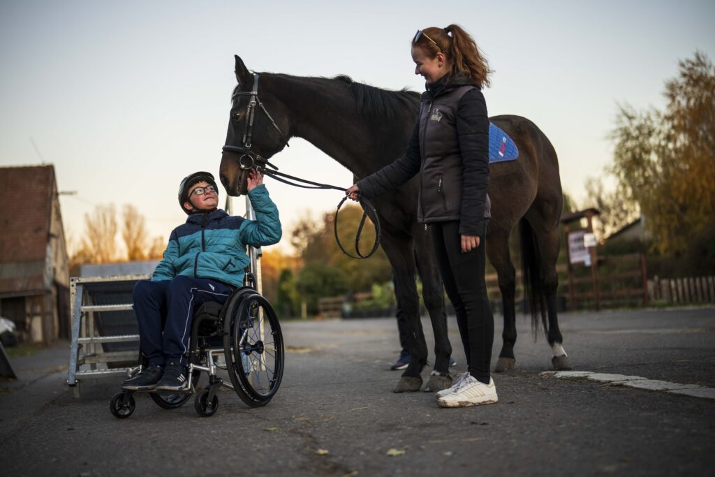 Pokud jde o pečující profese, v Apolence najdete sociálního pracovníka, pracovníka v sociálních službách, fyzioterapeuta a speciální pedagogy. Celkem jde o šest lidí, i když dohromady pouze na tři celé úvazky. „Naše cílová skupina je prakticky neomezená. U hiporehabilitace jsou to převážně děti s různým typem postižení. Pracujeme i se šestiměsíčními kojenci. Požadujeme však potvrzení od lékaře a fyzioterapeut následně upraví terapii a koně podle potřeby. U dětí má hiporehabilitace největší význam a efekt. Setkáváme se tu s dětmi s pohybovým i mentálním postižením, stejně tak s komunikačními vadami, z rané péče i bývalých kojeneckých ústavů,“ vysvětluje Diana Houdová.